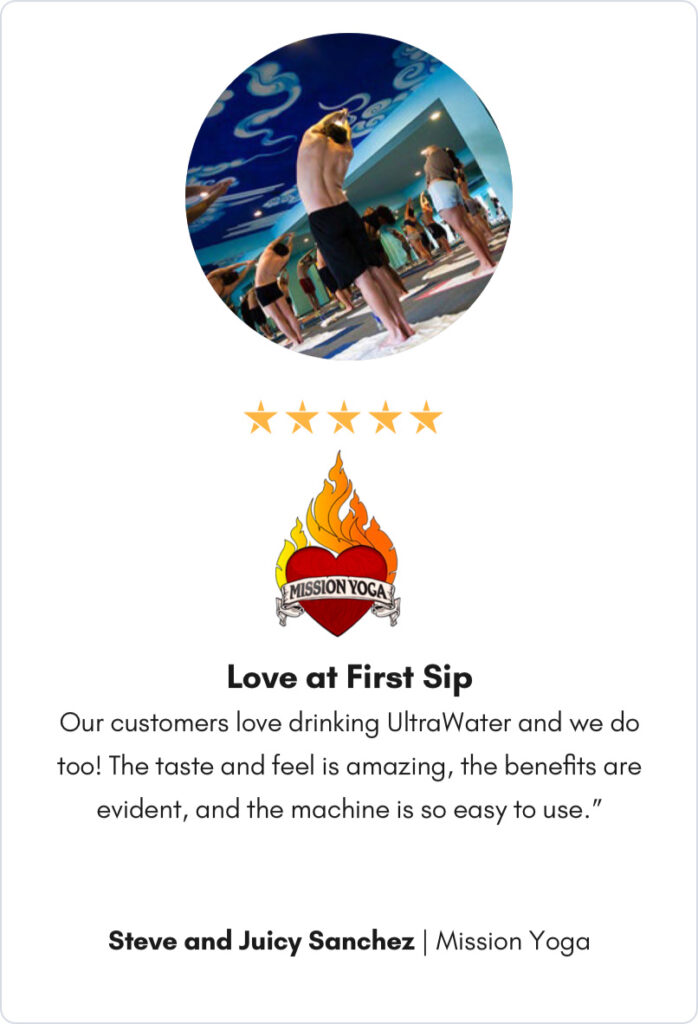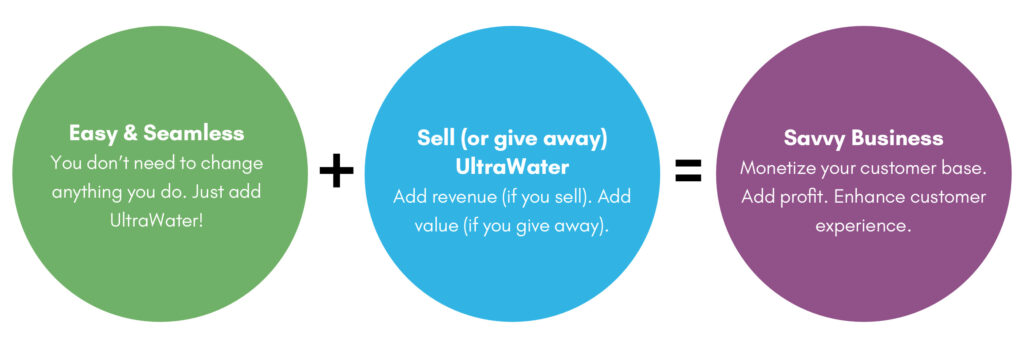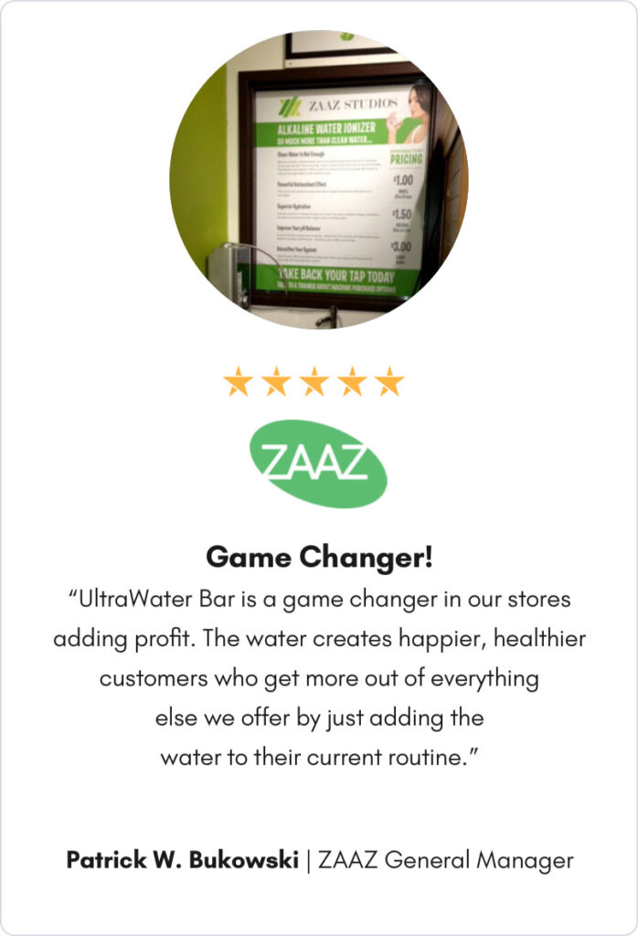 It’s a small space in your business with an UltraWater System. You sell (or give) your customers or patients UltraWater -the cleanest, healthiest, best-tasting, alkaline water.